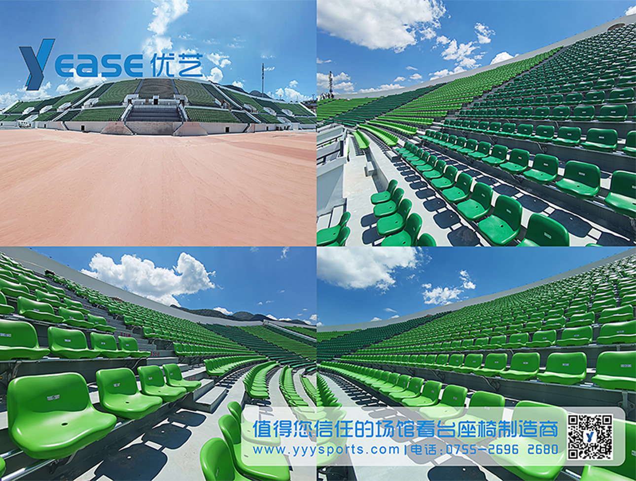 深圳優藝體育設備有限公司是中國專業的場館看臺座椅制造商與知名品牌。15年來,我們始終專注于為體育場館、演藝中心、會議場所及各類活動中心提供完整的看臺座椅解決方案。依托強大的綜合實力,我們致力于為客戶提供從方案設計、生產制造、專業安裝到售后維護的全流程、一站式服務。